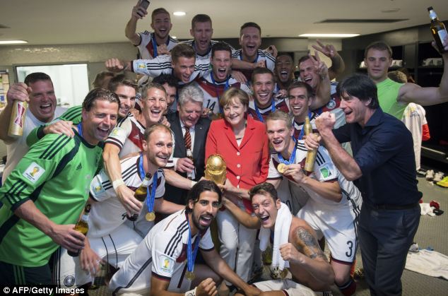 Τα πανηγύρια της καγκελαρίου με τους ποδοσφαιριστές στα αποδυτήρια, όπως σημειώνει η Daily Mail, λίγο μετά τη λήξη του τελικού της εξασφάλισαν μια θέση στην καρδιά των Γερμανών οι οποίοι τελευταία, είτε με το Μουντιάλ, είτε με τη σκληρή στάση που επιδεικνύει έναντι της Αμερικής για τις φήμες περί κατασκοπείας έχουν ξαναγαπήσει την Μέρκελ.